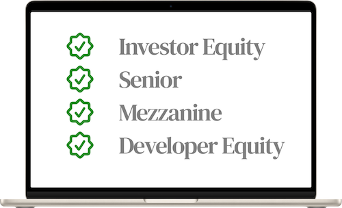 Our Senior / Mezz Finance feature allows you to build out your capital stack to generate finance costs and show equity requirements. Debt KPIs can help you see how appealing your development is to a lender.